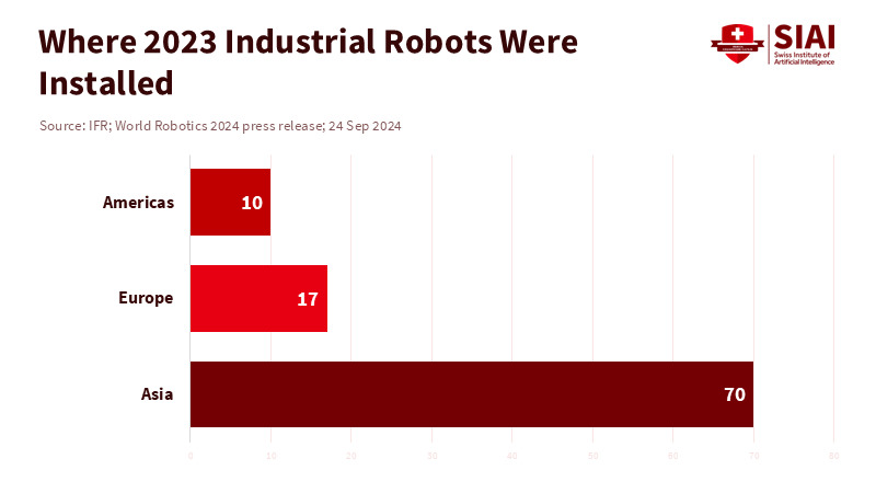 Then there's the energy issue. Work shifts are long, but batteries aren't. Agility says its new Digit lasts four hours on a charge, which is okay for set tasks with charging breaks. But that's not an eight-hour day in a messy place, let alone a home. Charging downtime, limited tasks, and a human babysitter make the business case weak. The robot market is growing, sure, but where conditions are perfect. Asia accounted for 70% of new industrial robot installations in 2023. But that doesn't mean humanoids are next; it just means tasks and environments need to be simple.