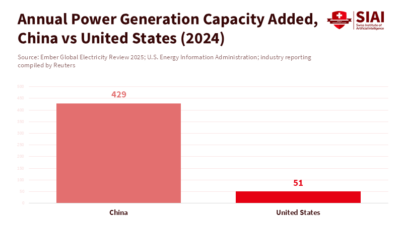 The crucial factor in today's artificial intelligence competition isn't just processing speed or venture capital investment; it's energy capacity, measured in gigawatts. In 2024, China's new power capacity grew by an estimated 429 gigawatts, while the United States added about 51 gigawatts. This difference reflects two distinct approaches: one views consistent, large-scale electricity as a vital public resource, while the other relies on fragmented markets and lengthy approval processes. If electricity supply limits processing power, the country capable of constructing, supplying, and operating large-scale artificial intelligence data centers will have a considerable advantage in speed, costs, and strategic resilience. This isn't just about technology; it affects where research centers develop, which businesses can innovate quickly, and which governments must create the regulations for future infrastructures. Energy capacity for artificial intelligence data centers is a geopolitical strategy more than an engineering issue.