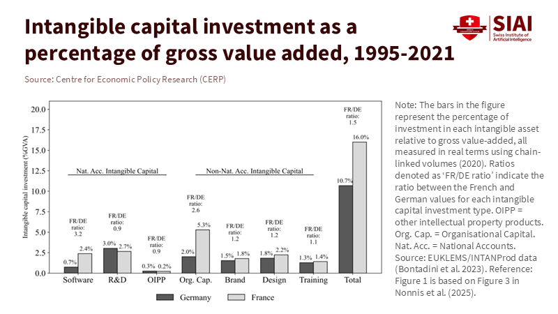 VoxEU/CEPR. (2025). Intangible capital in France and Germany: software ≈2.4% vs 0.7% of GDP; organisational capital ≈2.5× larger in Germany; implications for accounting.