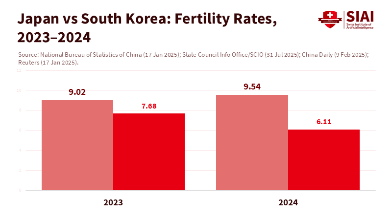 Fourth, avoid interpreting short-term increases as significant changes. The uptick in Korea in 2024 is welcome, but a one-time surge in marriages and base effects drove it. Comparing that increase to the scale of spending reveals that childcare alone is not enough to shift the balance. In Japan, despite the introduction of additional childcare spaces and new allowances, births continued to decline in 2024. In China, a slight rise in births accompanied a significant drop in new marriages. Policymakers should focus on areas where elasticities are strongest—minimizing the upfront and downside risks of marriage—while treating childcare as the necessary support it is.