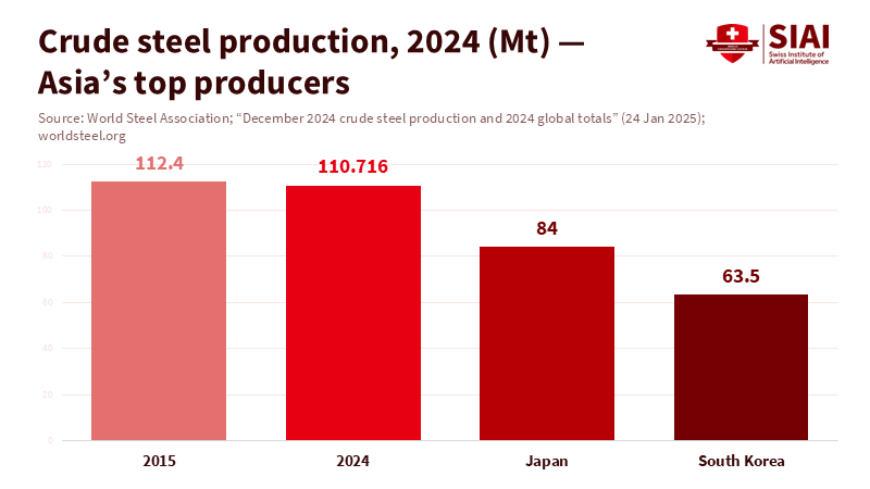 Defensive actions are increasing. The European Union is gradually introducing the Carbon Border Adjustment Mechanism through 2025 and will start charging in 2026. This measure will affect carbon-intensive imports, such as steel. It also imposed countervailing duties on Chinese battery-electric vehicles in late 2024. Meanwhile, the United States raised Section 301 tariffs on Chinese EVs to 100 percent in 2024. Across Asia, governments are actively involved. Japan’s “GX” initiative is now linking procurement and subsidies to boost green steel; for instance, JFE secured up to JPY 104.5 billion for an electric-arc conversion program. India expanded its Production-Linked Incentive scheme for specialty steel in 2025 to increase domestic production. South Korea’s “K-Chips” policy raised investment tax credits for strategic manufacturing through 2025. In the West, price protections meet capacity, and cash in the East, leading everyone to escalate.
