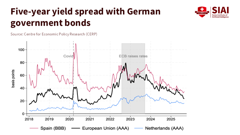This cost becomes evident during times of stress. VoxEU analysis shows that five-year EU-Bond spreads over Bunds have averaged about 50 basis points since 2022, sometimes widening sharply when investors doubt the ECB's willingness to backstop markets. This is a premium sensitive to policy rather than credit. Improving the system and establishing a permanent, sovereign-style program can deliver tangible benefits: saving billions over time, easing pressure on national budgets, and supporting schools, training, and research. Such reforms can foster a more resilient and efficient European financial system, directly benefiting public services and long-term stability.