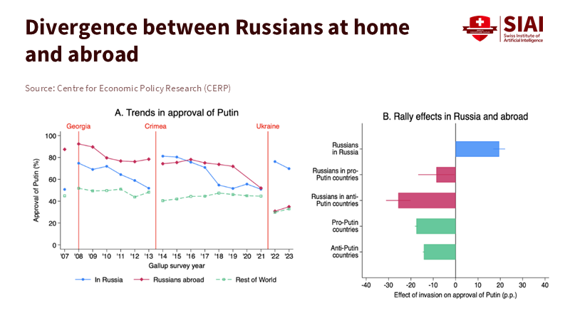 We often act as if being united as a country is a moral choice we make when things get tough. But it seems like there's something simpler going on. Threats make politics less complicated. It calms disagreements between parties, silences dissenters, and puts leaders in charge who can make promises to maintain order. Research shows this rally effect often occurs during crises. It can be stronger in countries with dictators. A study of what people in Russia think shows that when Russia invaded Ukraine, support for the government went up, and people started to dislike the West more. Approval rose, fewer people wanted to leave the country, and they had more negative views of the West.