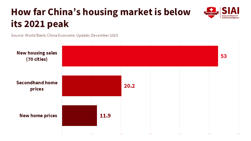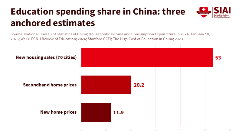 By the end of 2025, the real estate market was still unstable. Reuters reported that new home prices fell 0.5% from the previous month and 2.2% from the prior year, while real estate investment dropped 14.7% in the first ten months of 2025. A global report in December 2025 said that prices for new homes had fallen by 11.9% and for secondhand homes by 20.2% from the peak in July 2021. New home sales in 70 cities were 53% lower than the 2021 peak by October. These numbers are relevant to educators because they show a continuing decline in people's perceived wealth and a steady stream of bad news. In a housing wealth impact, this constant bad news is as important as the price levels themselves. Repeated price drops teach families to wait before spending, which is wise when buying a sofa but harmful when it comes to a child’s education.