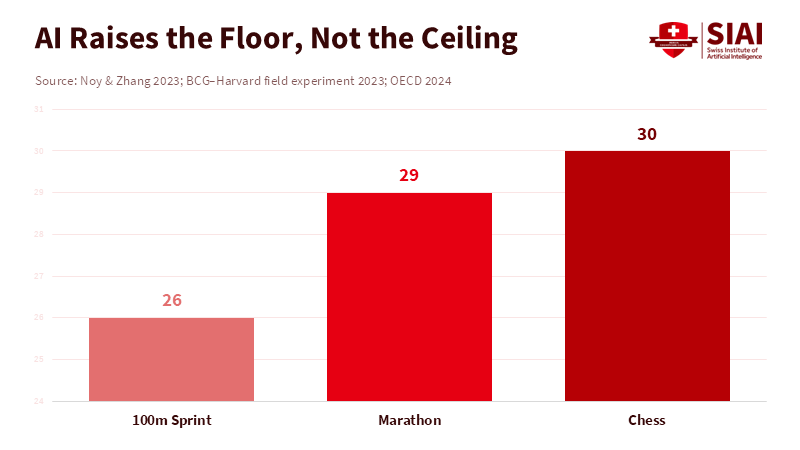 AI is speeding up the rate of initial improvement. Studies show that strong chatbots have made people faster and helped them do better work on writing and business tasks. Testing in business settings shows they are also helpful for work that follows a pattern, but their effectiveness declines when you need to think creatively. The message for teachers and leaders is simple. AI can make many students appear to have 5,000-hour skills for regular tasks. This raises the standard and pulls everyone closer together in the middle, but it doesn’t raise the bar at the very top. It actually makes skills like putting ideas together, coming up with new ideas, using what you know in different ways, and making smart decisions even more needed. The 10,000-hour rule can’t explain what’s happening now. Programs based on it will struggle.