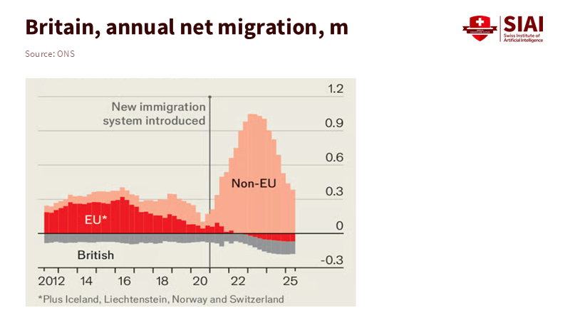 The change since late 2024 also matters. Net migration has fallen sharply, to 345,000 in the year ending December 2024, and to about 200,000 in the year to June 2025. This fall is because of new rules: higher salary requirements, stricter family rules, and limits on student dependents. But the key is still the same: the UK still depends on points-based routes where there is a big need. Work permits issued in 2023 were more than three times as many as in 2019. Even with the current limits, the points-based system is still in place. It is now the country’s primary mechanism for managing the labor market. The strange thing is that Brexit reduced EU migration but forced the UK to accept organized, global migration in its place.