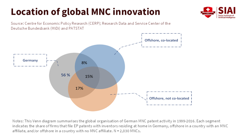 Top firms fund most business R&D. Manufacturing is focused on a few areas. The process between them influences what is used in schools. Multinational R&D specialization organizes this process. It matches tasks with resources and supports idea growth by placing science, engineering, and production where they work best.