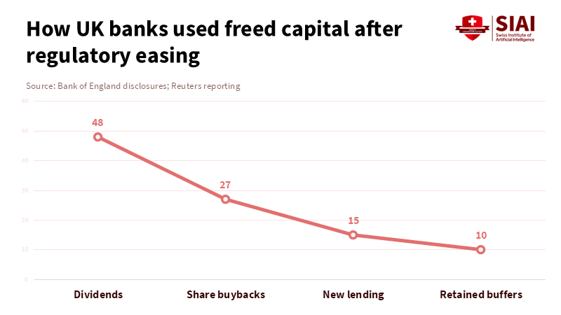 In December 2025, the Financial Policy Committee (FPC) quietly adjusted its benchmark for system-wide Tier 1 capital. The subsequent financial implications were more straightforward than the public discourse suggested. The committee reduced the formal benchmark from approximately 14% to about 13% of risk-weighted assets, immediately signaling to markets that holding equity would be less expensive. According to the Bank of England, following the reduction in the benchmark for system-wide Tier 1 capital requirements, banks chose to preserve their capital reserves and distribute some of the excess to shareholders instead of significantly increasing lending to businesses and individuals, as profitable lending opportunities remained limited and this did not result in a credit boom or notable rise in productivity. Instead, it led to higher returns for shareholders, reminding everyone that capital policy, without appropriate rules and viable incentives, gives owners the optionality rather than borrowers.