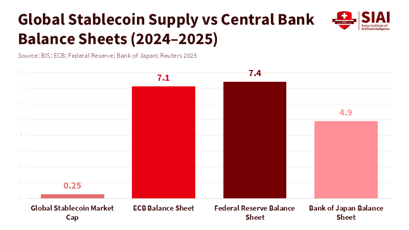 A common mistake when discussing policy is focusing on the financial tools rather than the systems that power them. Many people see stablecoins and central bank digital currencies (CBDCs) as rivals, but they are both just digital claims. The real competition is in how payments are processed. If a fully backed stablecoin is used in a country on settlement systems controlled locally, it works a lot like a regular bank deposit but in a different form. But if that same token is used across borders on digital wallets and ledgers run by companies from other countries, our own policy tools—like reserve requirements, emergency lending, capital controls, and anti-money-laundering rules—become less useful. That's how a simple tech change turns into a question of who's in charge. The proof is clear: stablecoins have grown rapidly, but the real risk arises when their clearing moves beyond our national control.