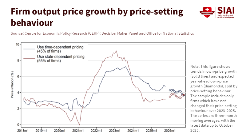 Putting the two ideas together makes an important point clear. If state-dependent pricing were rare, even large energy shocks would fade more quickly, causing widespread inflation. Likewise, AI-driven price changes ina context where prices are set on a schedule would have more limited, local effects. But the combination we see, which is more companies using state-dependent pricing plus faster technology-driven decision tools, creates a multiplier effect. So, those in charge must stop thinking about single causes. The speed of inflation in 2021–25 is best explained by a combination of energy shocks, AI-driven changes in business operations, and a shift toward state-dependent price-setting. This explains both the speed and the uneven patterns we've observed across countries.