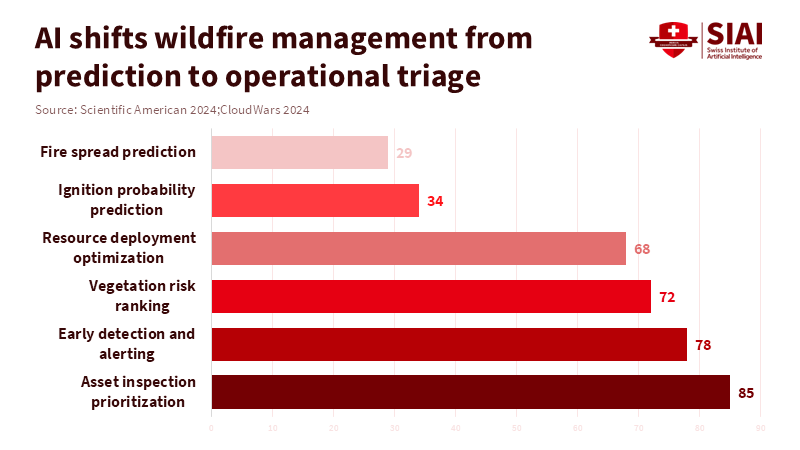 Wildfires don't wait around for the perfect prediction. In 2023, about 2.7 million acres burned across the United States. But that number doesn't tell the whole story. The worst damage usually occurs in areas where old infrastructure, dense brush, trees, and people converge. The big challenge for policymakers isn't just getting perfect forecasts. It's deciding how to use resources well. Systems powered by computer intelligence can help with this. They can rank things like utility poles, land areas, patrol routes, and inspections based on how much good each one will do. This helps get the most out of the limited number of people and money available for maintenance. Even a small change in how things are done can prevent big losses. This isn't about replacing people with machines. It's about creating things that direct technicians to the inspections, power shut-offs, or brush clearing that will probably reduce the chance of a fire starting. People in charge still make the final decisions, while the computer intelligence provides them with a list of priorities.