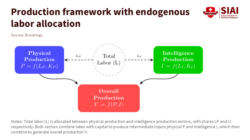 When A expands while K and L do not, the share of labor can decline even when overall output stays constant. In simple terms, the same amount of production can require fewer workers. But this isn't an inevitable outcome. If physical and intellectual outputs complement rather than replace one another, investments in labs, clinics, logistics, and classrooms can help stabilize wages. This points to a critical shift for education systems: focusing on environments and approaches where physical presence enhances what AI alone cannot provide—care, hands-on skill, safety, and community.