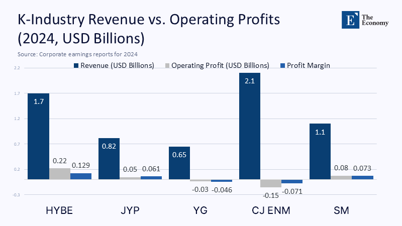 Corporate earnings are beginning to call the bluff. HYBE's 2024 revenue broke all company records at ₩2.2 trillion, yet operating profit slid 37.5 %, and the firm posted a rare net loss after aggressive overseas acquisitions misfired. JYP achieved its highest quarterly sales ever, but still watched its margin contract as concert expenses outpaced ticket demand in Europe. Once the avatar of hip-hop swagger, YG swung into an operating loss after album presales overestimated Western conversion rates. Streaming television tells the same tale: CJ ENM's ambition to turn TVING into an "Asian Netflix" required a 531 billion-won write-off that plunged the parent group into the red despite a 42 % revenue surge. Cosmetics, long the Hallyu auxiliary engine, grew in the United States but continued to contract in China, the largest market once presumed captive to K-beauty hype. In each case, multinational marketing budgets were drafted assuming that foreign consumers were already burned by K-brand desire; accountants are now quantifying the opportunity cost of that overconfidence.