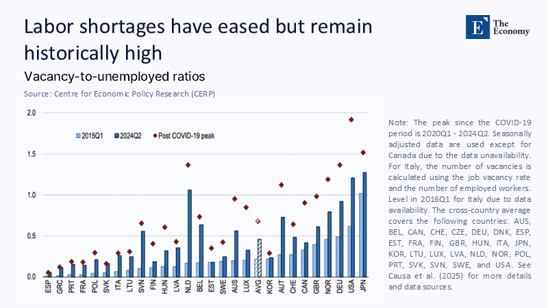 The CEPR analysis reminds us that women and immigrants disproportionately fill vacancies in low-pay sectors. In Italy, migrants constitute 160 % of their share of the overall workforce in accommodation and food services, while women's representation in health nearly doubles their economy-wide weight. This matters for the four focus economies in two ways. First, Japan and Korea—countries with historically low female participation—could relieve shortages and raise job quality by lifting barriers around parenting, tax, and contract rigidity. Second, reliance on migrants, the solution adopted by the U.S. and Germany, is politically and administratively tougher for states with linguistic homogeneity and restrictive naturalization rules. For them, the only sustainable fix is to expand decent domestic demand.