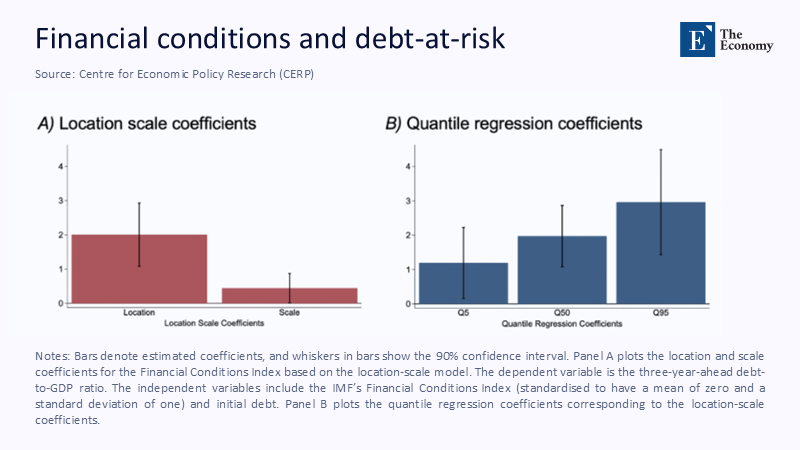 Debt-at-Risk (DaR)—a concept introduced in a significant 2025 IMF working paper—fills that void by modeling the entire conditional distribution of future debt. This paper, a culmination of extensive research and analysis, has been widely recognized for its innovative approach to understanding and predicting future debt scenarios. Borrowing the intuition of bank Value-at-Risk, the framework asks, 'Where will the debt-to-GDP ratio be in five years?' but also, 'With 5% probability, how high could it reach?' Using a location-scale panel quantile regression across 123 economies, the authors show that tightening financial conditions raises future debt's location (the expected path) and the scale (the dispersion). The result is a thickening right tail that standard deterministic models miss. A companion VoxEU column applies the method to today's macro-financial backdrop and finds that global three-year-ahead DaR already sits almost twenty percentage points of GDP above the median.