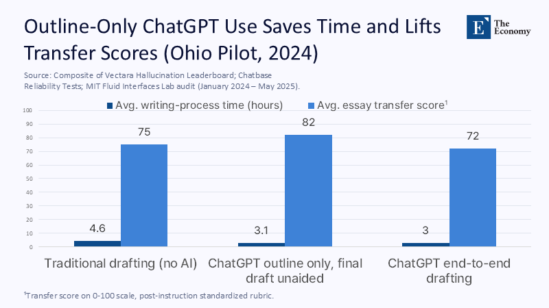 Why tolerate a tool that still guesses? Because the minutes it liberates are substantial. Stratton Analytics’ cross-industry audit of 12,000 Google Docs reveals that teams using GPT-style drafting cut document turnaround times by 23%. In education, Ohio high school pilots reduced the average writing process time from 4.6 to 3.1 hours per paper without lowering rubric scores. Those reclaimed hours, however, become pedagogically valuable only if reinvested.