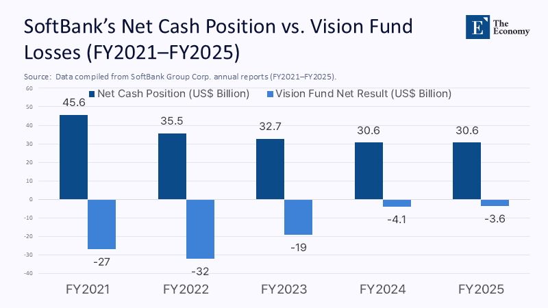 Strip away the diplomatic gloss, and a simpler story appears: SoftBank needs liquidity. The Vision funds have oscillated between record losses and one-off gains; net cash on hand fell from US$45.6 billion to US$30.6 billion within nine months, even after asset sales. Despite eking out its first annual profit in four years—¥1.15 trillion in FY 2025—SoftBank still logged a ¥526 billion loss in Vision Fund 2, while pledging up to US$40 billion more to OpenAI. The simultaneous promise to syndicate US$10 billion and inject another US$700 billion into US AI infrastructure underscores the mismatch between ambition and available capital. The SWF addresses that mismatch by converting diplomatic goodwill into financing: Japanese officials hope that tariff relief will follow once the cash is committed; the White House hopes construction will start before the election; and Son hopes that governments will validate valuations that private markets are increasingly questioning. In short, the fund would externalize investment risk precisely at the moment SoftBank confronts portfolio markdowns and a higher-rate environment.