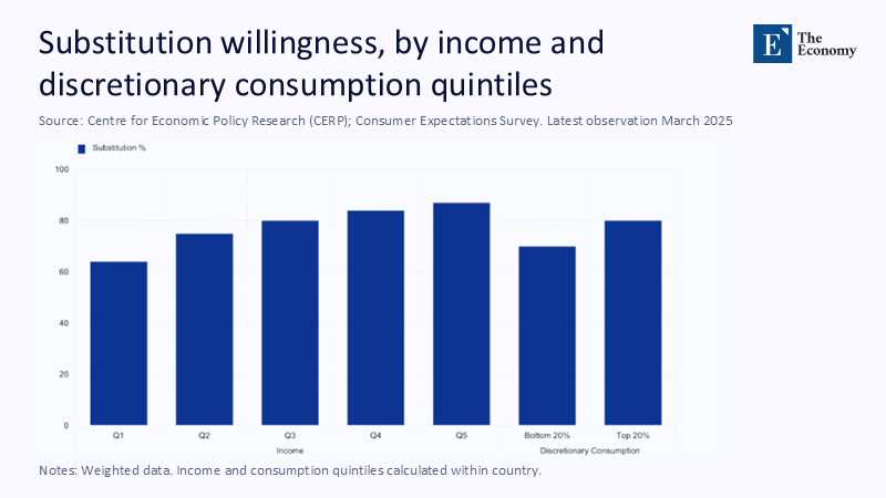 The traditional narrative frames tariffs as sterile instruments of macro‑policy, calibrated to protect domestic industries or extract bargaining leverage. That reading breaks down when shoppers treat the origin label as a statement of identity more potent than price. The latest ECB Consumer Expectations Survey reveals that 44% of euro-area households are willing to abandon US brands "regardless of cost"; a Morning Consult poll indicates that one in five French and German respondents have actively boycotted an American firm in the past year. What is surprising is not the existence of boycott sentiment—East Asia's flashpoints taught us that lesson long ago—but its newfound intensity in Western economies, which were once considered immune to overt economic chauvinism. If even cosmopolitan Danes are using apps like BrandSnap to avoid US products, the textbook assumption that high-income consumers prioritize utility over nationality deserves urgent revision.