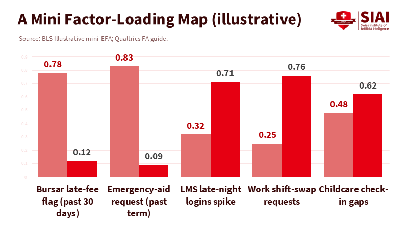 For educators and administrators, the benefits should be clear. Factor analysis helps us interpret scattered indicators—attendance drops around specific dates, unpaid bills, shifts to part-time status, increases in emergency aid requests—into a manageable set of actionable factors: cash flow risk, caregiving challenges, unstable work schedules, and expectations about family support. You don't need to conduct a maximum-likelihood EFA in-house to adopt this mindset. We simply need to ask: Which hidden pressures are clustering behind the symptoms we see, and what straightforward measures would alleviate those pressures? That bridges the gap from statistics to scheduling and connects the dots to real students.