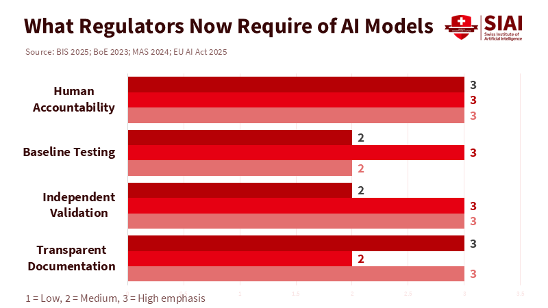 Regulators are not asking for the impossible; they want traceability. The BIS's latest guidance on AI explainability states that existing model-risk rules were created before today's opaque models and emphasizes the need to balance performance goals with explainability limits. It also suggests a practical approach: allowing complex models in limited roles when their benefits clearly outweigh the costs and proper safety measures—such as output floors and independent validation—are in place. This approach aligns with the EU AI Act's risk-based method: high-risk users must manage risks, govern data, and provide documentation sufficient for authorities to assess compliance. This does not hinder innovation; it simply requires better evidence and accountability before scaling. For boards, the new standard is that they own the output. If a chatbot makes a mistake or a trader's model misclassifies, they cannot blame the vendor. They must understand the controls and benchmarks applied.