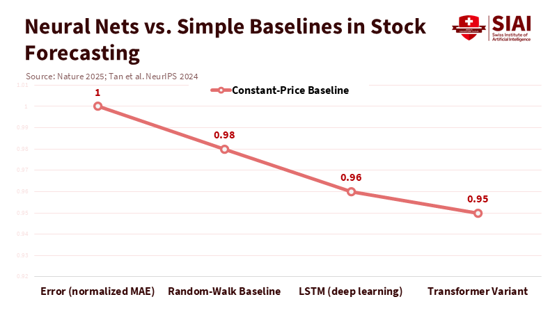 In 2025, a new Nature study on stock-market prediction reached a surprising conclusion. Even improved deep-learning models trained on chart data mainly learned the average behavior of each stock and only slightly outperformed a simple "tomorrow ≈ today" baseline. This result should concern both boards and regulators. It highlights the issues with the data rather than the engineers. Markets are filled with noise, irregular patterns, and unpredictable shocks. When a multi-million-euro computing stack barely beats a constant-price guess, the lesson is clear: pattern recognition works well in areas with stable structures, such as images, speech, and text, but markets are different. If we keep applying the image-recognition model to finance, we will keep producing visually appealing dashboards that perform worse than basic methods. The solution is not to ban neural networks; instead, we need to change how we teach and manage them, emphasizing transparency and governance, so companies stop relying on black boxes they don't understand.