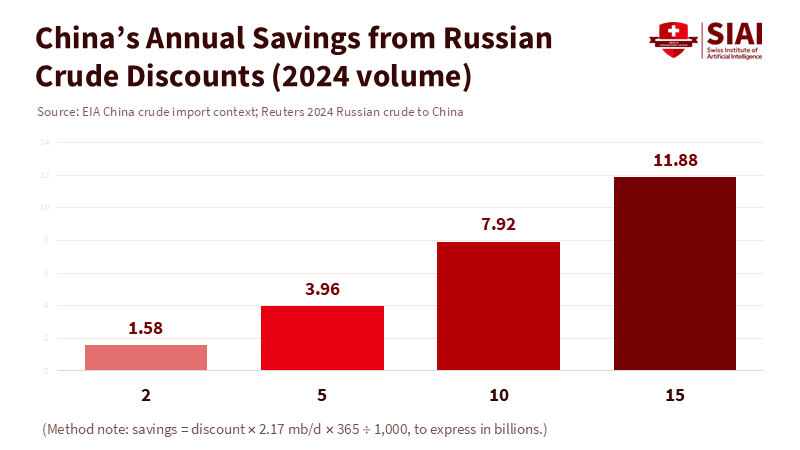 In 2024, China's significant import of approximately two million barrels of Russian crude oil per day, nearly one-fifth of the barrels entering the country, brought substantial economic benefits. The fact that China often paid less than the global benchmark for those shipments resulted in significant savings. A US$10 difference multiplied by daily volumes over a year equates to savings of about US$8–10 billion for Chinese refiners. If that gap reaches US$15, the savings climb into the low tens of billions. Even when tighter enforcement narrows the gap, Beijing still benefits because even a slight difference matters when economic growth is sluggish and consumer prices stay flat. For Moscow, this is a matter of survival. A reliable buyer replaces lost European customers and maintains a steady flow of hard currency despite sanctions. Their alliance is not based on friendship. Instead, it focuses on price and pressure. As long as the United States and NATO remain central strategic challenges, both sides have strong reasons to stay close.
