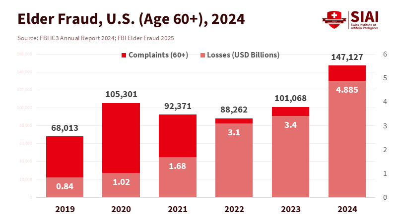 In 2024, Americans reported losing more than $12 billion to fraud. Adults aged 60 and over accounted for a significant portion of this loss. The FBI’s Internet Crime Complaint Center recorded nearly $4.9 billion in losses from 147,127 older victims, marking a year-over-year increase of over 40 percent. This spike is not random. It corresponds with a new reality in which synthetic voices and polished scripts can mimic a grandchild, a banker, or a government official in seconds. This is AI elder fraud. It takes advantage of how aging brains process risk and social cues, along with a payment system that allows large transfers to leave accounts in minutes. The urgency of the situation cannot be overstated. Improved tips and posters will not solve a structural problem. We need to slow the money, stage the decisions, and create default friction for the highest-risk actions. Otherwise, the losses will continue to grow as the tools become more advanced.
