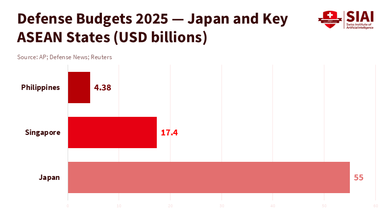 Global military spending rose 9.4 percent in 2024, marking the most significant annual increase since at least 1988 and reaching $2.718 trillion. Japan’s decision to boost defense spending does not happen in isolation; it is part of a broader security crisis affecting the South China Sea, Taiwan, and the Russia–Ukraine war. In Southeast Asia, defense budgets are increasing in response to actual risks: Singapore’s 2025 defense plan rose to S$23.4 billion (about 3.2 percent of GDP), and the Philippines increased its 2025 allocation to 256.1 billion pesos to strengthen external defense following conflicts over the Second Thomas Shoal. These reflect genuine concerns, not mere rhetoric. The current challenge is to turn increased spending and Japan’s rearming into a stable order that the region recognizes as its own.
