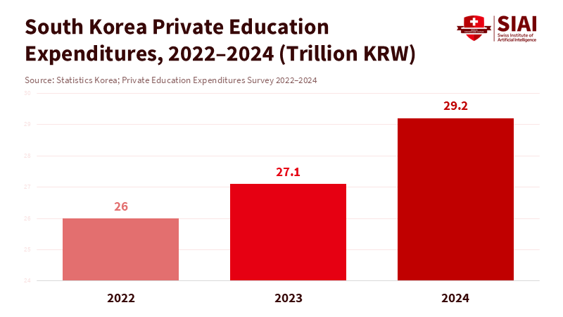 Japan is not the first country to face this issue. South Korea expanded free high school education nationwide by 2021, but private tutoring and competitive school admissions did not diminish. In 2023, Korean families spent ₩27.1 trillion (around US$20–21 billion) on private education, a 4.5% increase from 2022, with an average monthly expenditure per student of $299. By 2025, that total reached $20.0 billion. The government covered school fees, but families continued to pay for advantages. The pattern is clear: when basic schooling is free across both sectors, competition shifts to the margins, such as admissions prep, language courses, essay coaching, and test strategies. Free tuition lowers the barriers to entering the competition but does not eliminate them.