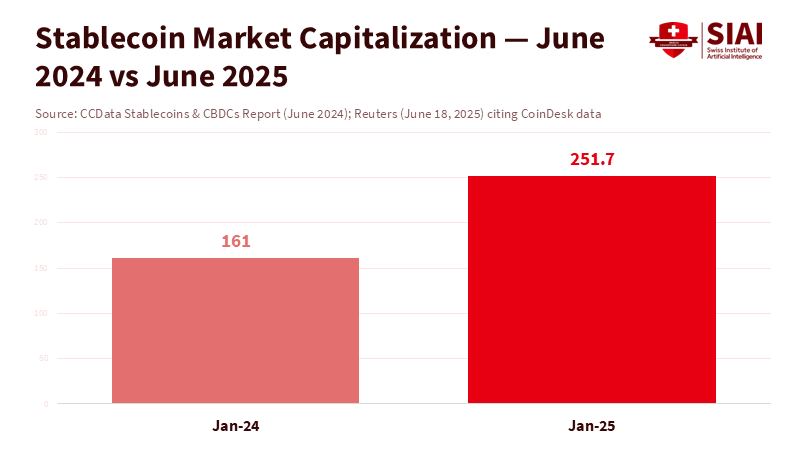 Reuters. (2025, June 18). Stablecoins’ market cap surges to record high as U.S. Senate passes bill.